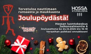 Nykyisin Hossa on suosittu retkeilyalue ja kansallispuisto, joka perustettiin Suomen 100-vuotisjuhlavuonna. Hossan luontokeskuksesta löydät leirintäalueen, majoitusta, ravintolan sekä monipuolista tekemistä ympäri vuoden – patikointia, melontaa, maastopyöräilyä ja kalastusta kesällä sekä hyvin hoidetut talvireitistöt hiihtoon, lumikenkäilyyn ja retkeilyyn talvisessa luonnossa.