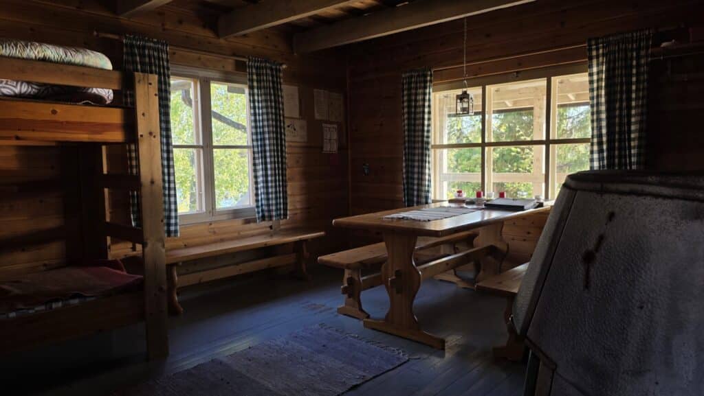 Kämpässä on tupa, keittokomero ja makuukamari, yhteensä vuodepaikat kuudelle hengelle.