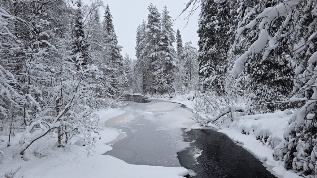 Lounatkoski is perfect even for a short visit: just a few steps along the forest path, and the quiet story of winter opens up before you. It’s a place where it’s easy to slow down, look around and breathe in nature’s own rhythm.