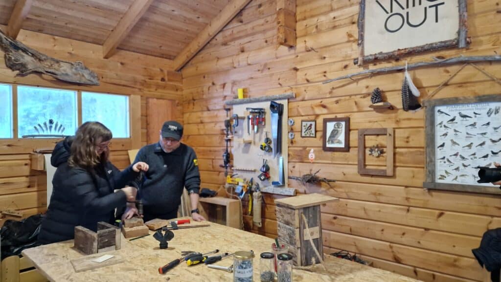 We also began the day by building birdhouses in Wild Out Finland’s workshop. The finished birdhouses will be placed in the forests of Hossa, offering new homes for local small birds. Along the way, we learned more about their lives, about crafting with natural materials, and about how even small actions can support the surrounding nature.