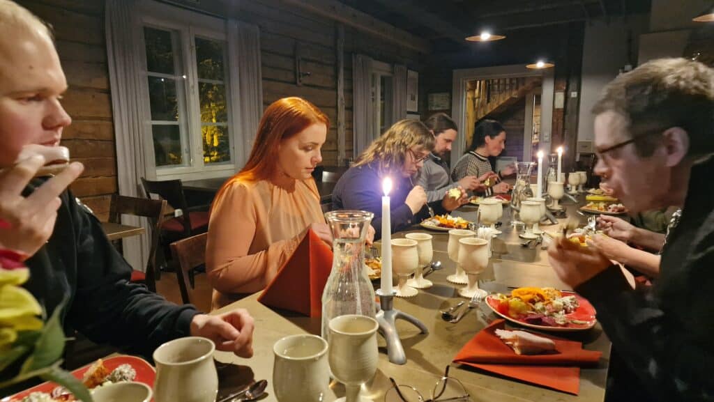 This autumn, we spent a wonderful day with Tessa and Thomas at Wild Out Finland in Kuusamo. Their warm hospitality and exceptional skills in wilderness cooking created an unforgettable experience for all of us. Later in the evening, we enjoyed a shared dinner at Iisakki Village—an easygoing setting for conversation, laughter, and reminiscing about the summer season.