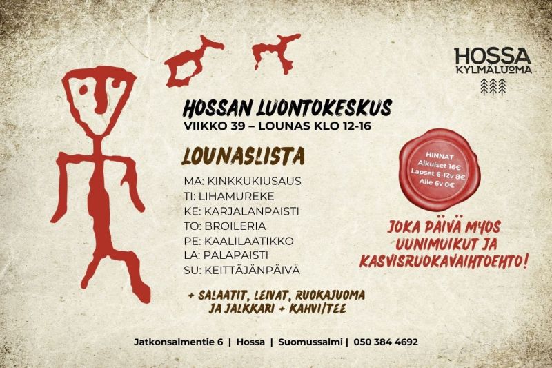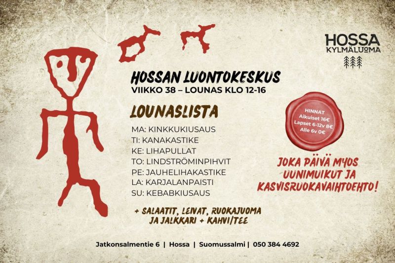 At Hossa Nationalpark Visitor Centre you can enjoy a hearty Finnish lunch every day from 12:00 to…