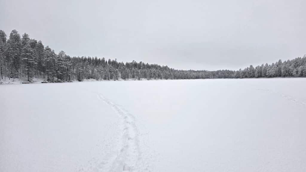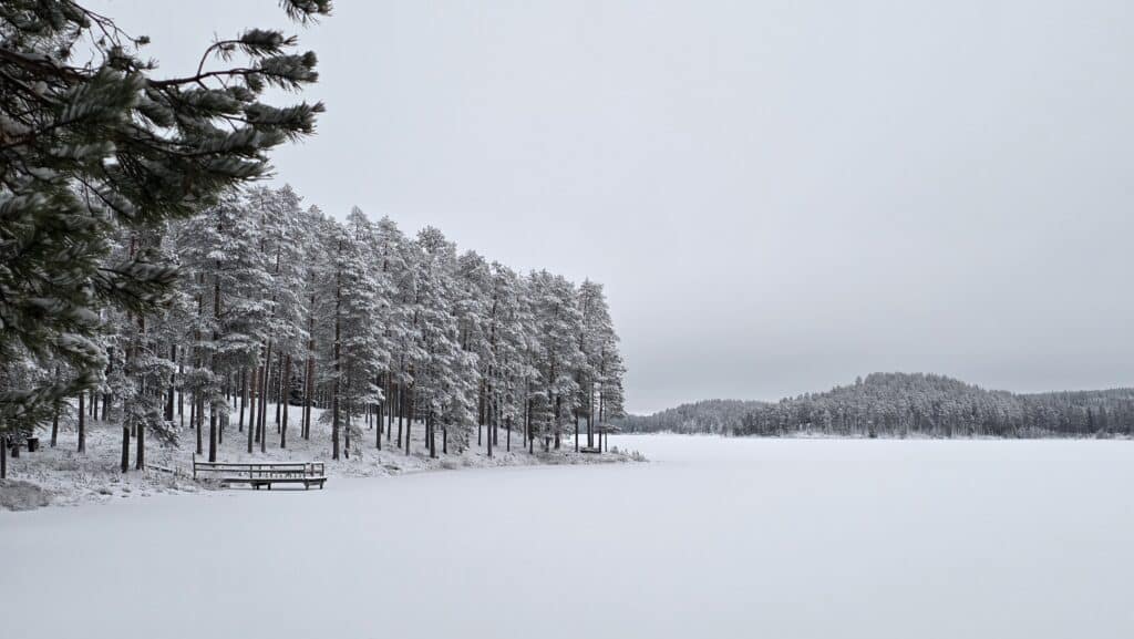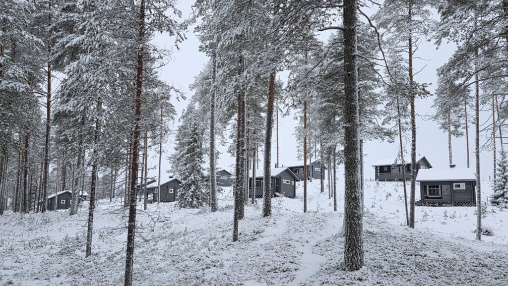 Morning broke over Kylmäluoma with a touch of frost and a soft layer of overnight snow. The landscape had settled into a calm, graphite-toned sketch, each branch and path drawn with delicate precision by nature’s own hand. This story wanders through a winter day step by step — along silent trails, into the blue moment, through the warmth of the sauna — and finally into the kind of peaceful night’s rest that can only be found in Kylmäluoma.