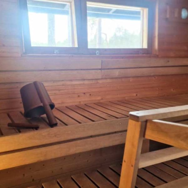 The lakeside sauna has two dressing rooms, shared shower rooms and a sauna. From the pier, you can easily swim in the clear water of Sarvi. The sauna is perfect for camping area guests, cabin residents and those who need a sauna at the end of a day’s hiking.