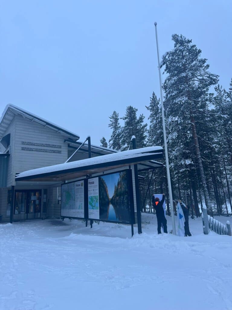 Tänään luontokeskuksen lippusalkoon vaihdettin Metsähallituksen lipun tilalle liehumaan Hossa-Kylmäluoman lippu.