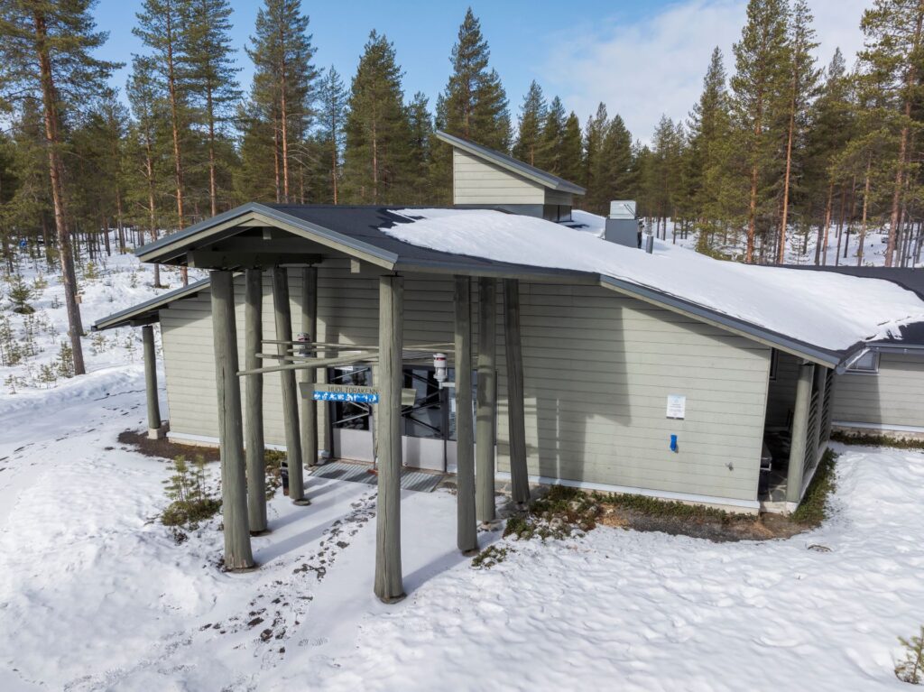 Karhunkainalon huoltorakennuksessa on siistit ja esteettömät saunat, keittiötilat sekä kalankäsittelytilat. Retkipäivän jälkeen voit lämmittää saunan, valmistaa aterian tai käsitellä päivän saaliin mukavasti sisätiloissa.