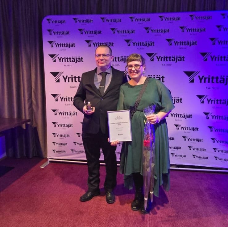 – Olemme todella kiitollisia ja iloisia saadessamme tämän tunnustuksen – Suomussalmen Vuoden Yrittäjä -palkinnon, Timo ja Darja kertovat.