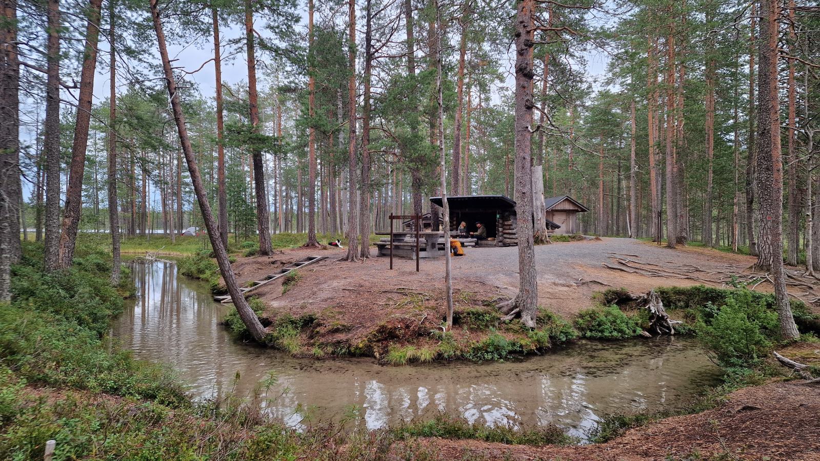 Tapasin nuotiopaikalla mukavia retkeilijöitä, jotka olivat saapuneet rannikolta asti. He olivat kulkeneet Hossan polkuja jo useamman yön ajan ja päättivät viettää yönsä Muikkupuron rannalla teltassa. Heille tämä ei ollut ensimmäinen kerta Hossassa – maisemat ja tunnelma houkuttelevat palaamaan yhä uudelleen, vaikka matkaa kertyykin pitkälti.
