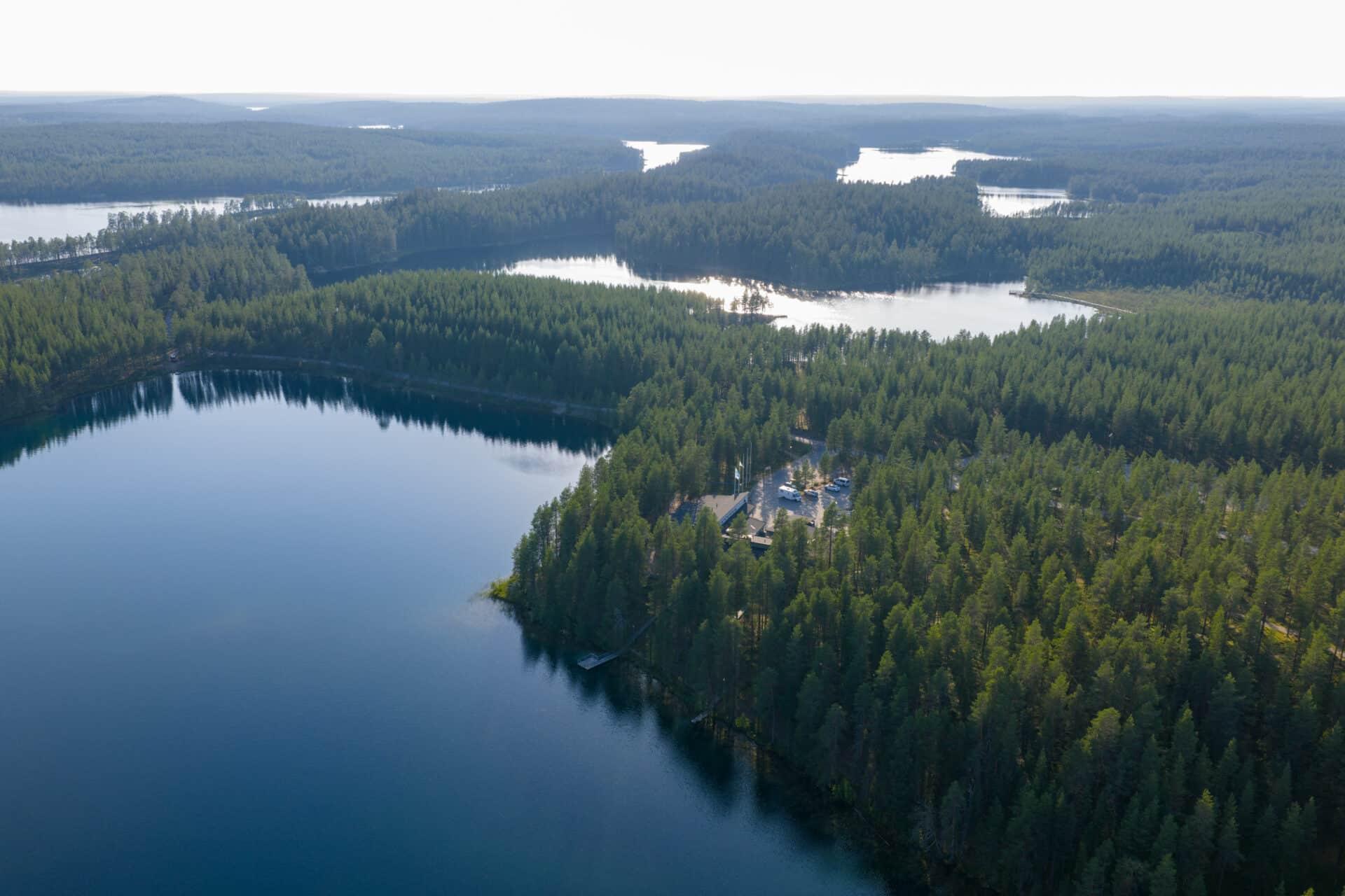 Kun retkipäivä on takana, lepo löytyy Hossan Karhunkainalon majoituksista. Mökit ja leirintäalueet sijaitsevat aivan Hossan kansallispuiston vieressä, reittien alkuvaiheilla ja kalaisien järvien äärellä. Täällä heräät luonnon rauhaan ja lähdet poluille suoraan ovelta.