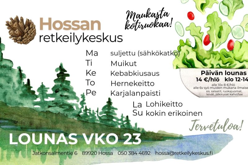 Hossan retkeilykeskuksessa tarjoillaan kesäkaudella maukasta kotiruokaa päivittäin klo 12–14 – kes…